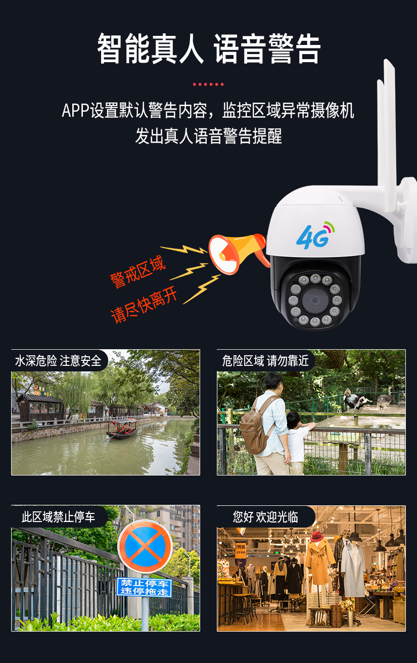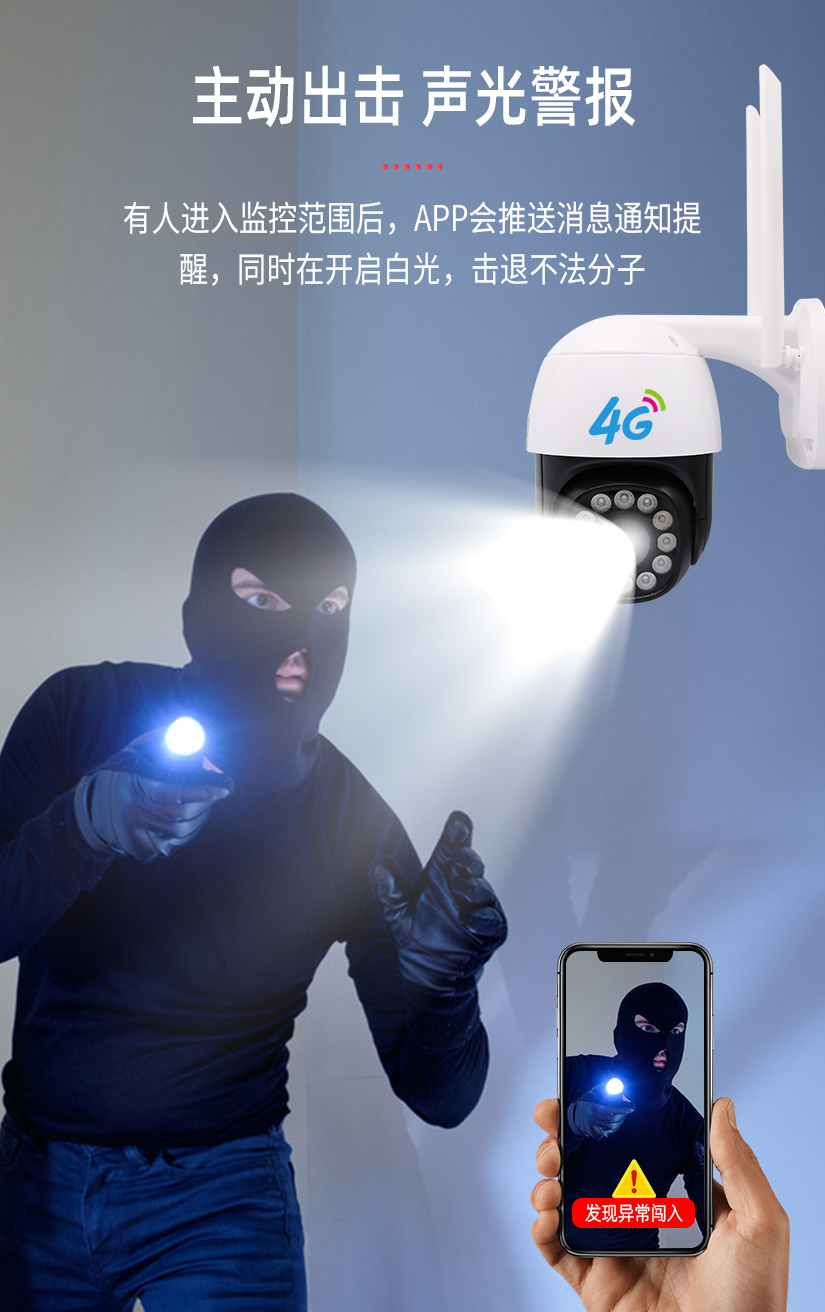 ⚫ 配置 4 倍变焦镜头,支持云台控制,水平 360°/垂直 90°,更好的实现有效监控;